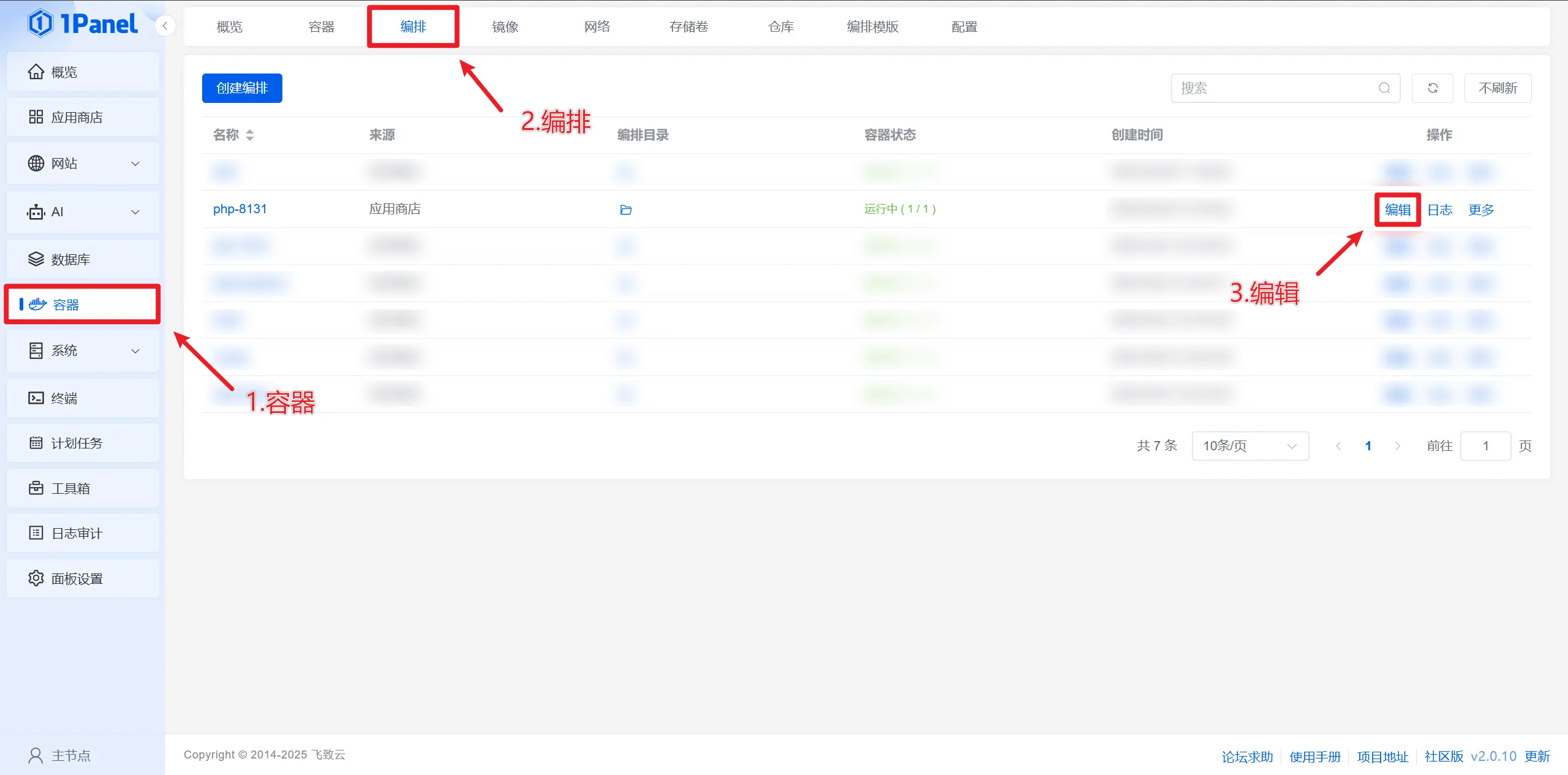 创建好伪授权站点后,找到需要授权的站点所使用的php容器编排(容器 - 编排 - 目标PHP - 编辑)
