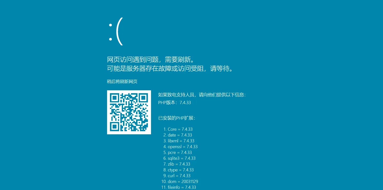 高仿 Windows 10/11 的 BSOD 页面 2024-12-11 9:30 | 294 | 1 | 奇奇怪怪 101 字 | 1 分钟内 无聊写了些有意思的东西,可以在默认访问出问题的情况下显示类似于Win10/11蓝屏的报错界面 先看一下效果图,有静态页面和PHP双版本的显示源码 由于WordPress限制,页面无法放入HTML代码,所以我将其上传到了Github: GitHub NickPikachu/windows_bsod_error_page
